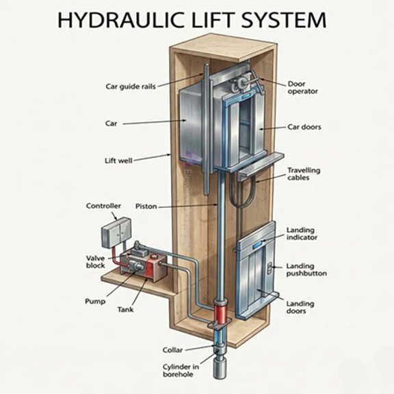 Hydraulic Lifts are elevators powered by hydraulic fluid and a piston system, offering smooth, reliable, and high-capacity vertical movement. They are ideal for low to mid-rise buildings, providing robust performance, safety, and comfort for both passengers and goods.